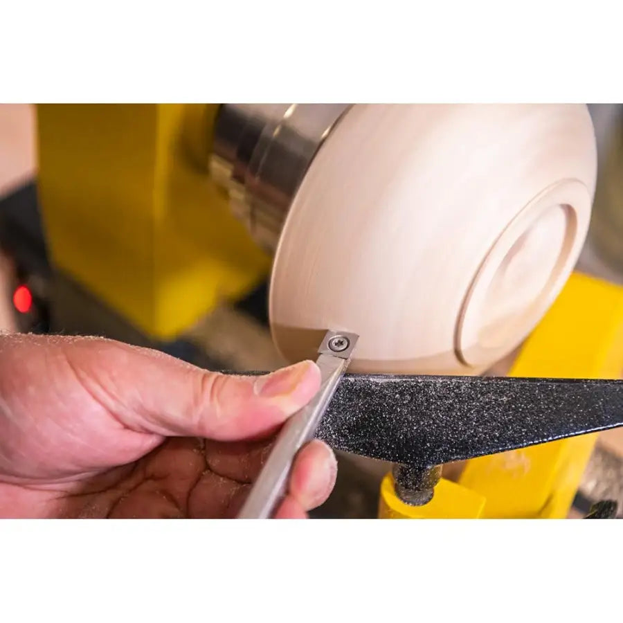 The set includes three cutter profiles to suit a range of turning applications: an 11mm square cutter for roughing and removing square stock, a 12mm round cutter ideal for curves and contours like the inside of a bowl, and a 10 x 28mm diamond-shaped cutter suited for fine detail work, tight corners and creating beads. The replaceable tip design simplifies maintenance - when the cutting edge dulls, simply rotate or replace the tip and you're good to go again; there is no need to sharpen. Easy to control, these tools sit parallel to the floor on the tool rest. Simply move across the rest to use.