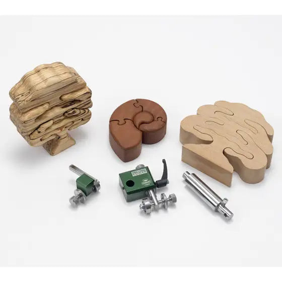 Using this Record Power guide system allows the creation of much taller workpieces than is possible using a traditional scroll saw, whilst also benefitting from the power provided by a bandsaws much larger motor – ideal for intricate bandsaw box projects, large puzzles and much more.