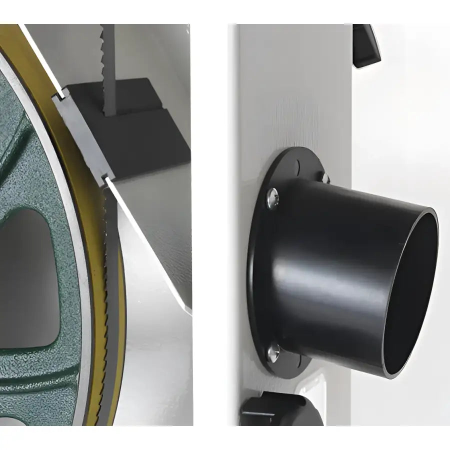 The SABRE 300 takes wood dust protection to the next level, with the combination of side & rear dust extraction ports. The rear dust port features a CamVac bayonet fitting, allowing direct connection with CamVac high-filtration dust extractors. The side dust port pairs with the Record Power 2.5" flexible hose, streamlining the dust extraction setup. A removable dust cap situated within the lower cabinet over the blade, further reduces airflow leakage, increasing extraction efficiency.