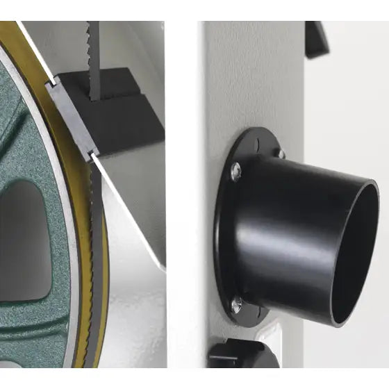 The crowned band wheels help the blade run naturally in the centre of the wheel and raise the blade to minimise contact between blade teeth and bandsaw tyres. The radius is machined into the casting to offer a permanent solution that cannot wear down and will remain consistent, even when changing tyres.
