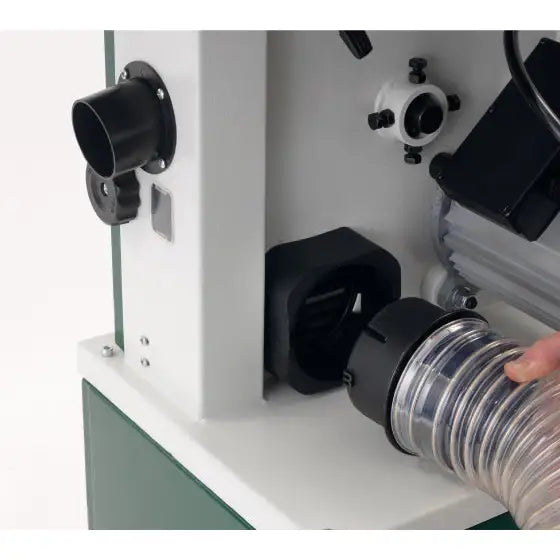 The SABRE 300 takes wood dust protection to the next level, with the combination of side & rear dust extraction ports. The rear dust port features a CamVac bayonet fitting, allowing direct connection with CamVac high-filtration dust extractors. The side dust port pairs with the Record Power 2.5" flexible hose, streamlining the dust extraction setup. A removable dust cap situated within the lower cabinet over the blade, further reduces airflow leakage, increasing extraction efficiency.