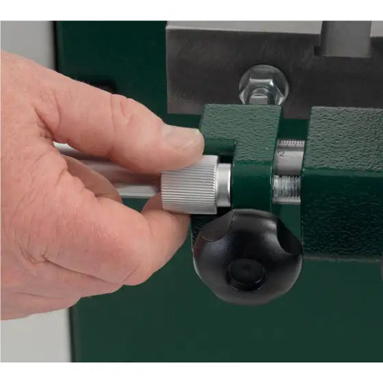 The premium-grade sliding block blade guides provide extensive blade support, to help minimise vibration & enhances stability & control. The blade guides are made from premium O1 tool steel, selected for its exceptional ability to dissipate heat more efficiently than ceramic alternatives. Adjustment of the blade guides is completely tool-free & can be carried out quickly & easily, using the accurate adjustment & locking handles.