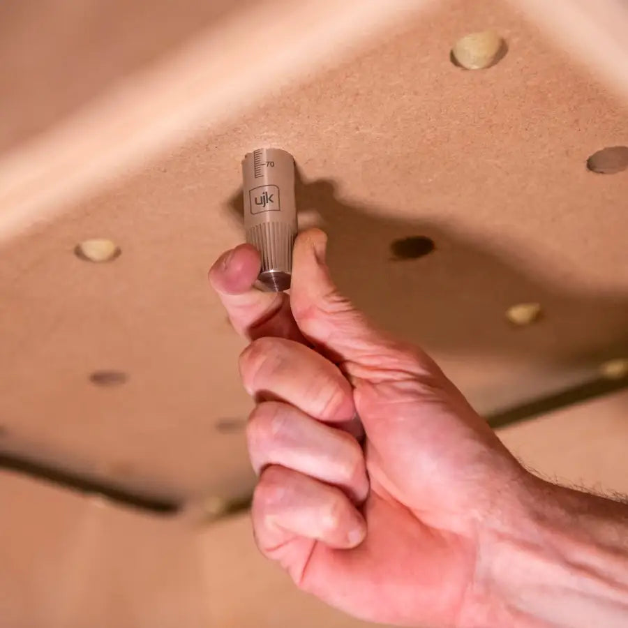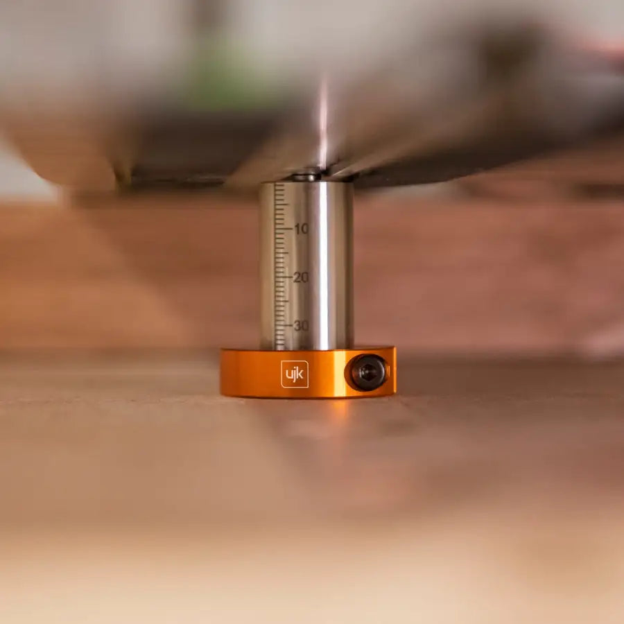 These stainless steel guide rail dogs, hidden beneath the rail, offer superior security and precision. The guide rail dogs prevent saw cutting across other dog holes. Tee-bolt design fits into the rail’s Tee-slot, replacing the need for rail clips. The knurl on the lead taper helps to lock the dog to the rail. Laser-etched 0-75mm scale for wood thickness measurement. Supplied in a pack of 2 with split stop collars to set the wood thickness.